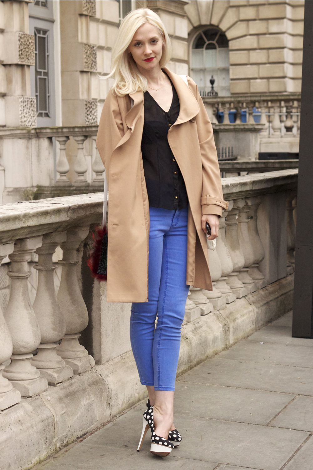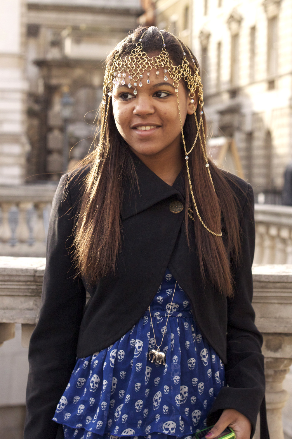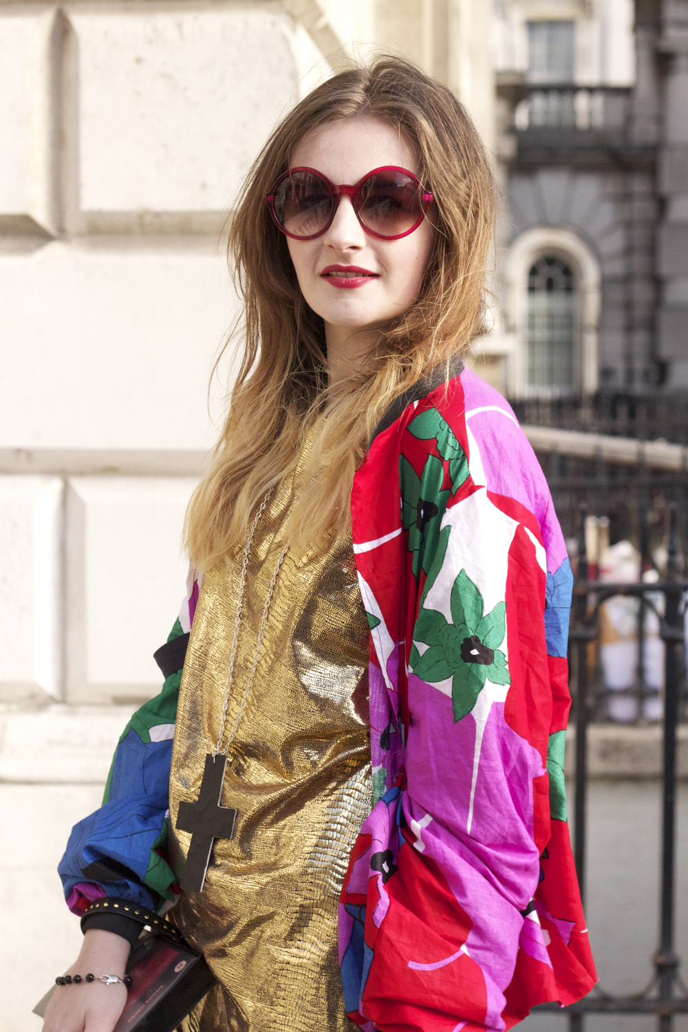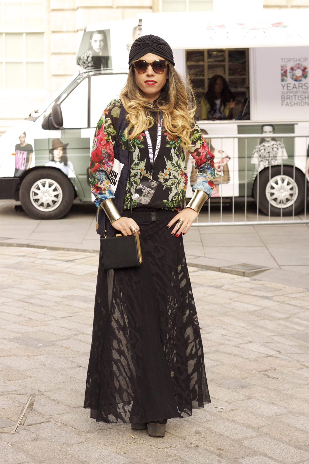 Natuka is a journalist, stylist and fashion designer- crikey! What a jack of all trades. She wears Maje jacket and trousers, a top designed by herself, Zara shoes, YSL clutch and vintage jewellery.
