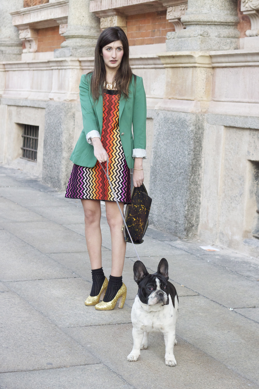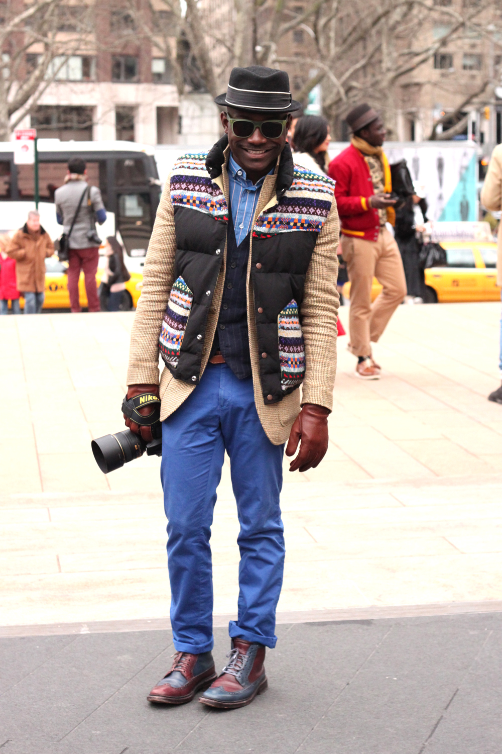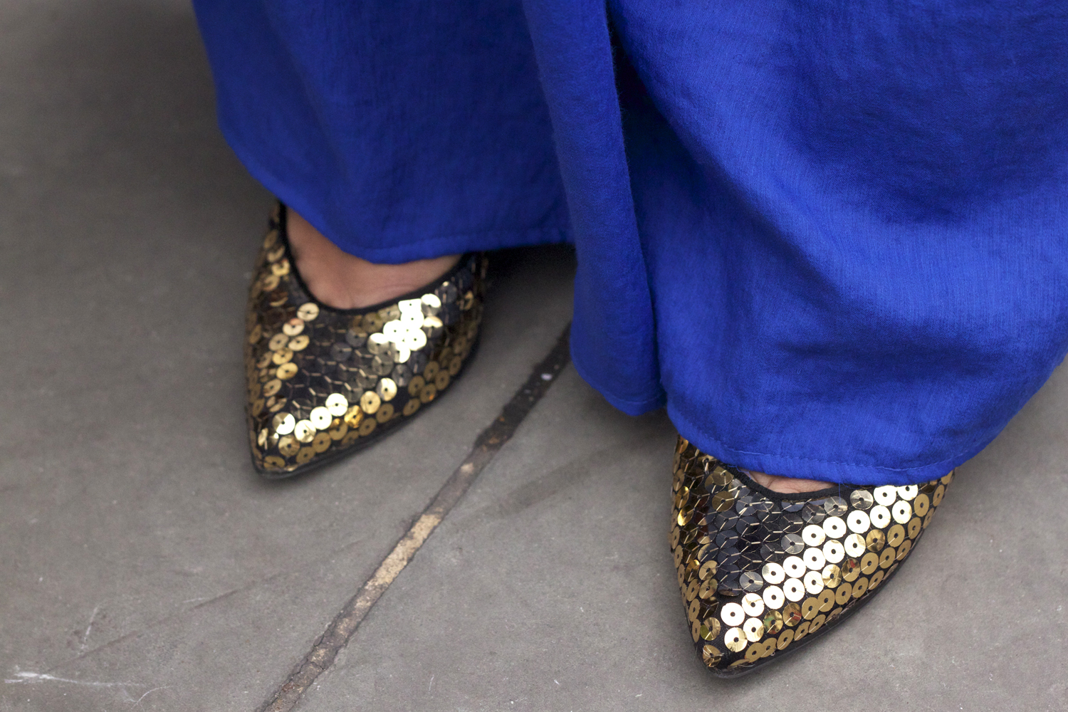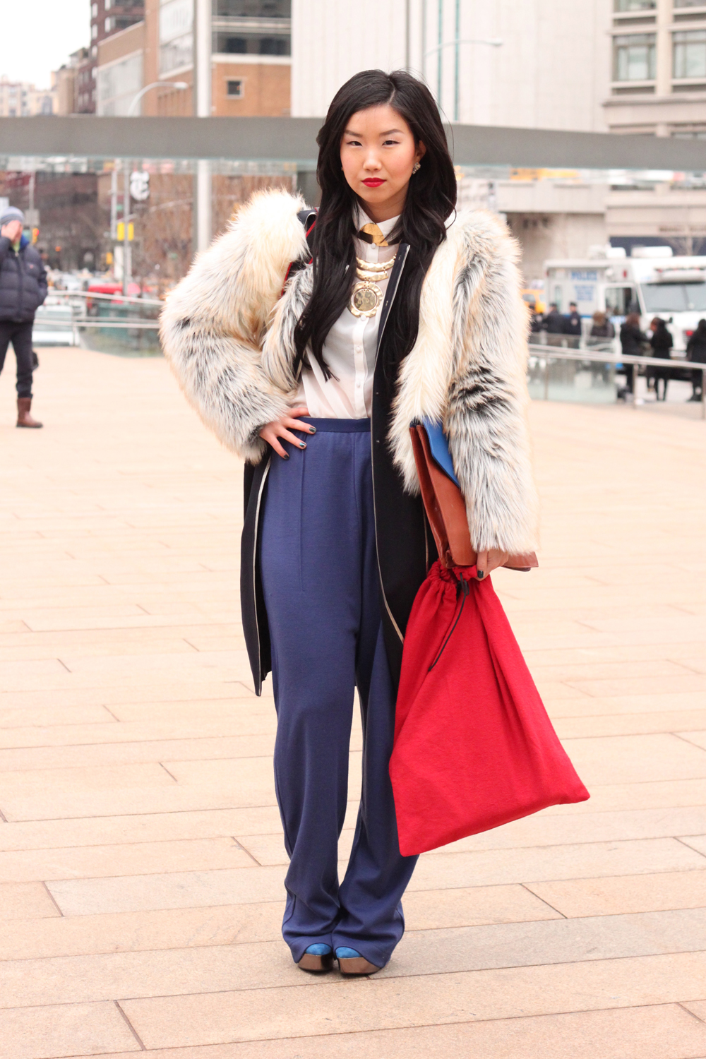 Natuka is a journalist, stylist and fashion designer- crikey! What a jack of all trades. She wears Maje jacket and trousers, a top designed by herself, Zara shoes, YSL clutch and vintage jewellery.