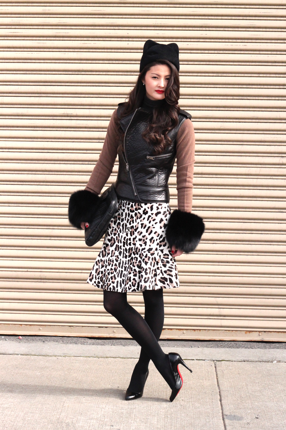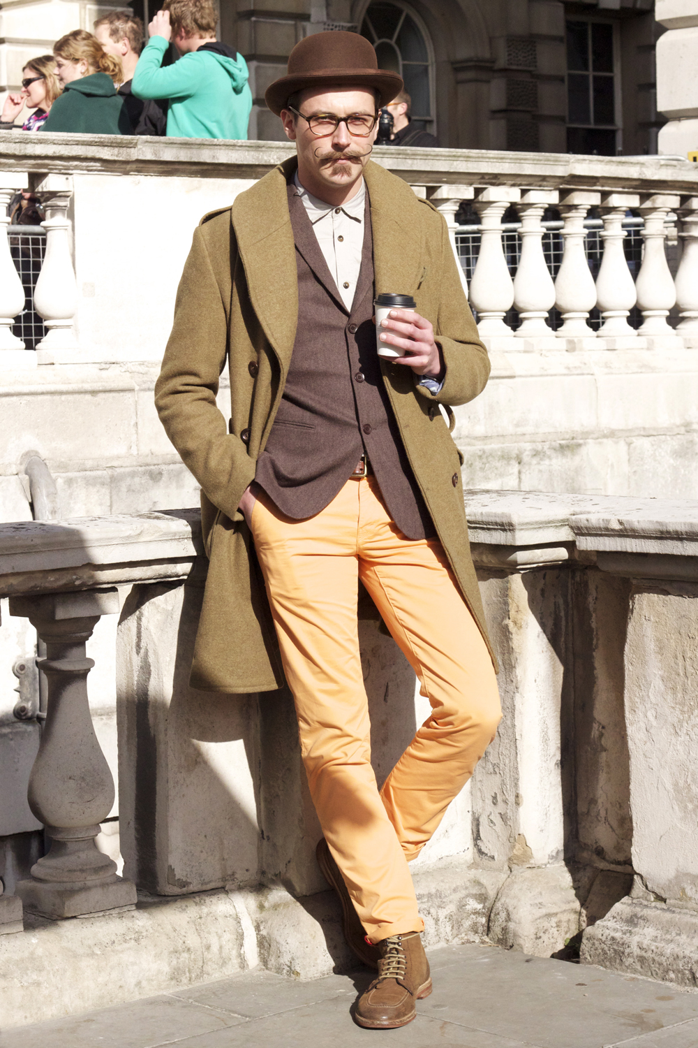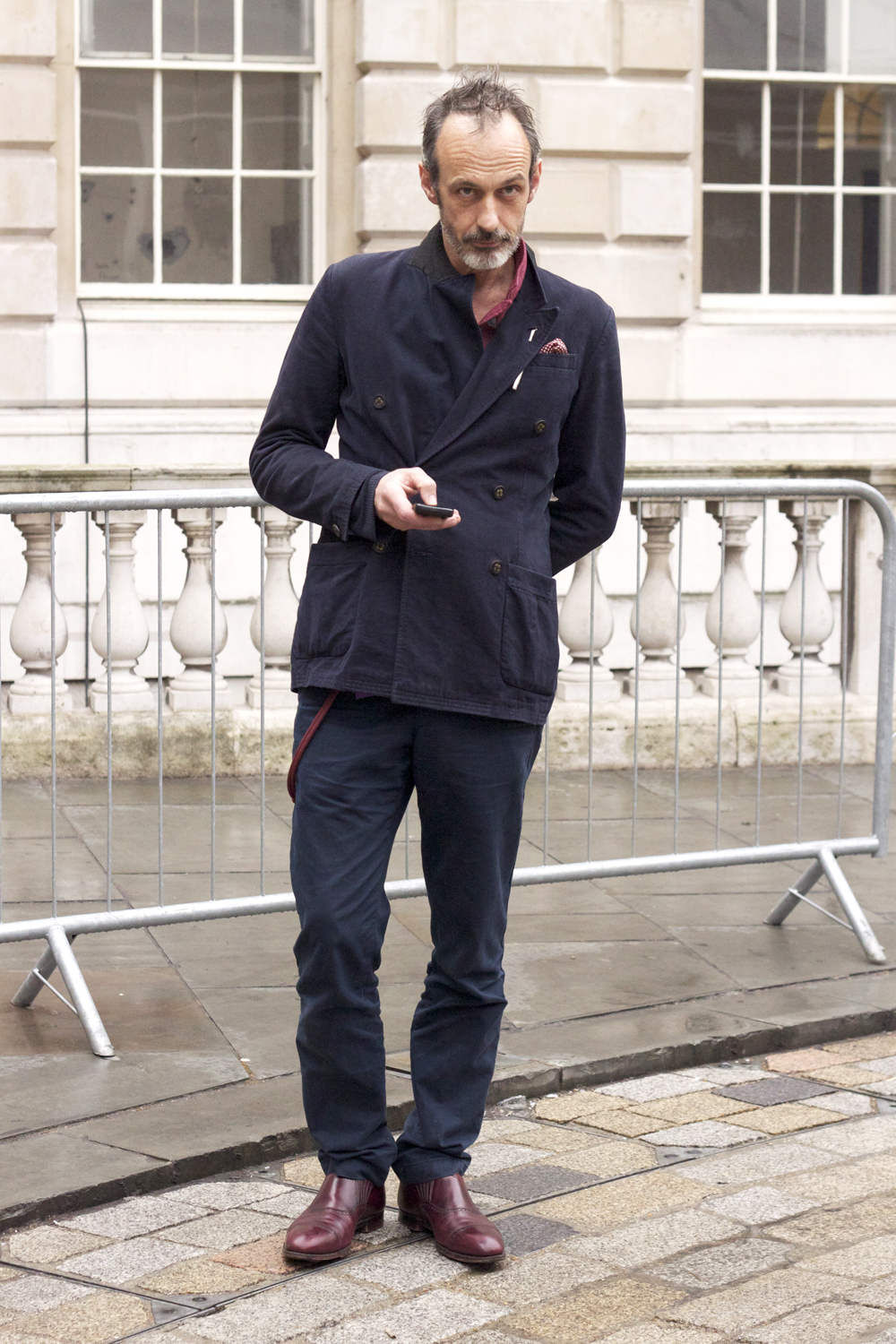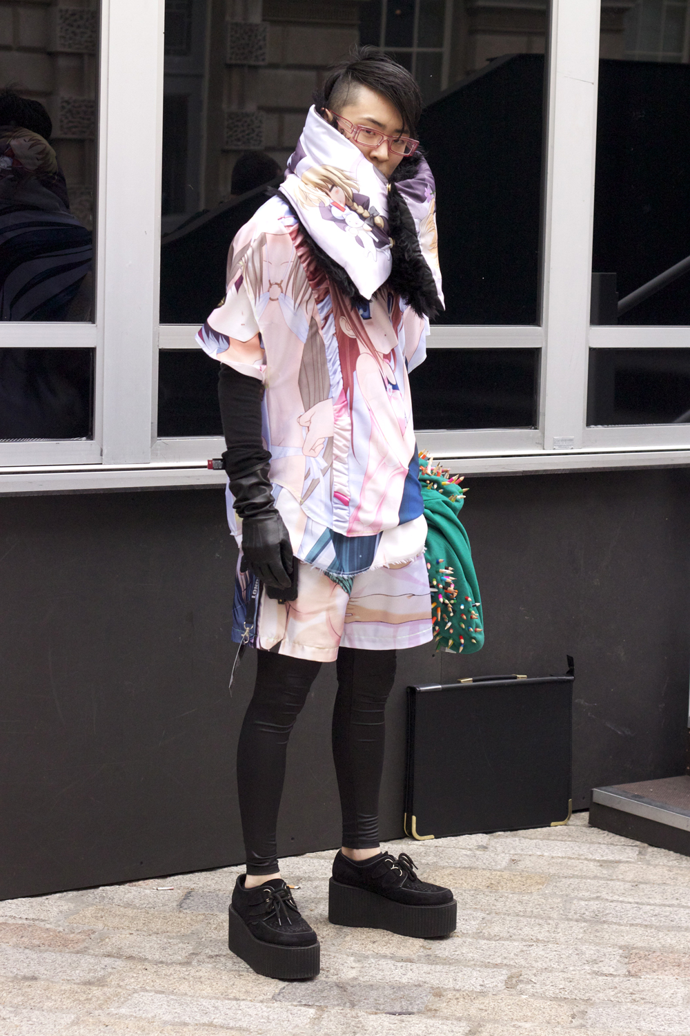 I met the charming Christiane outside the Giorgio Armani show, then bumped into her again, post costume change outside Roberto Cavalli. Here she wears a coat and skirt by Escada, top by Acne, boots by Clautre Chose, hat by Lala Berlin and sunnies by Ralph Lauren.