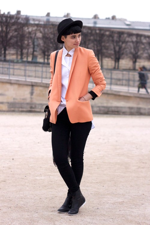Leigh Lezark in a suit by Sonia Rykiel