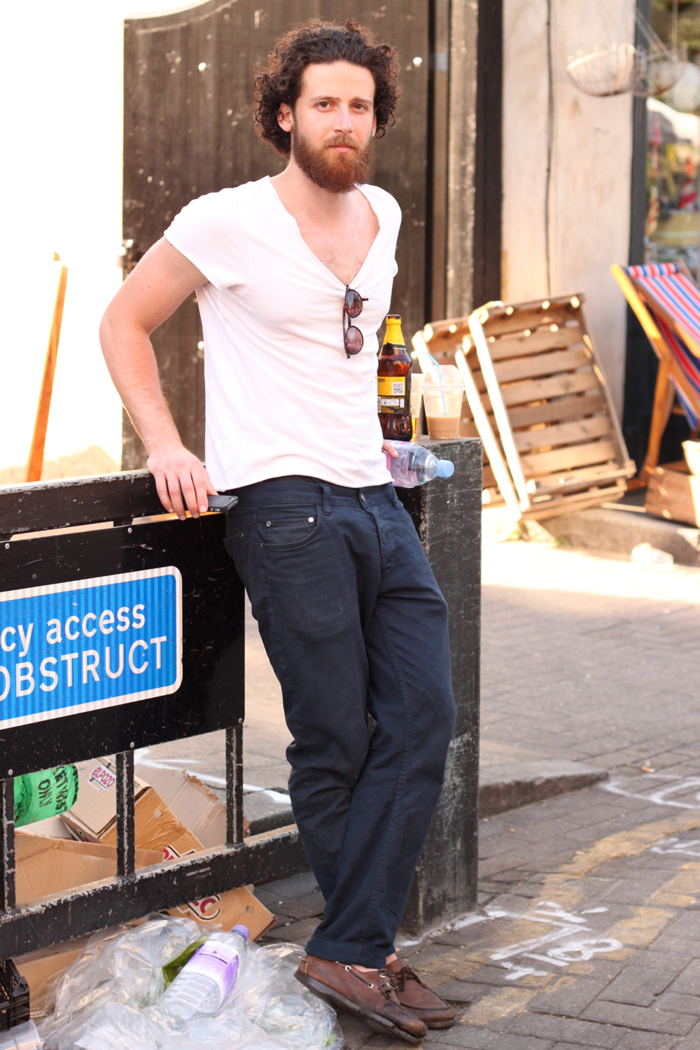 Al wears t-shirt from Topman, Sebago shoes, vintage trousers and sunglasses. The beard he grew himself and and what a wonderful job he did.