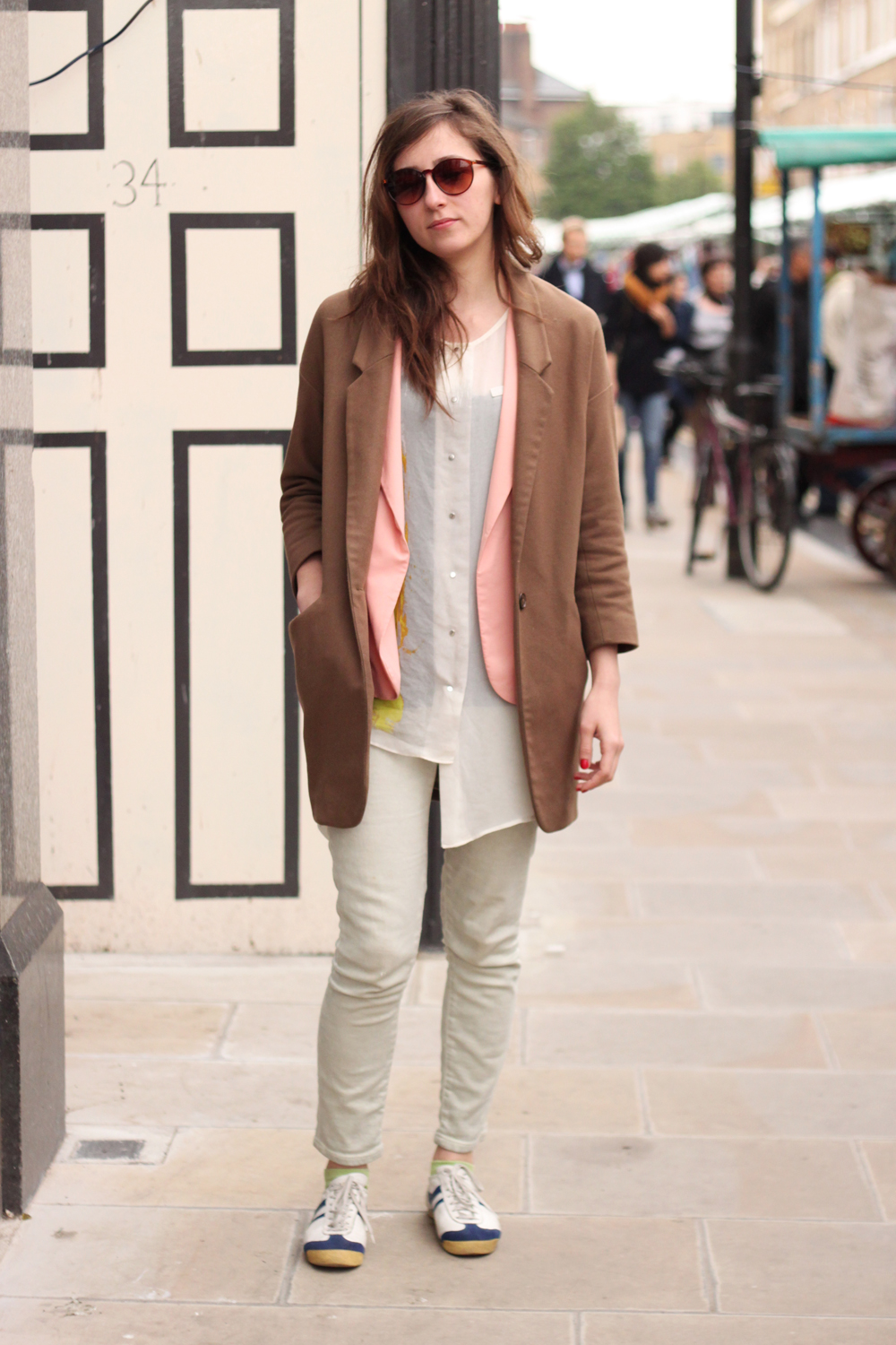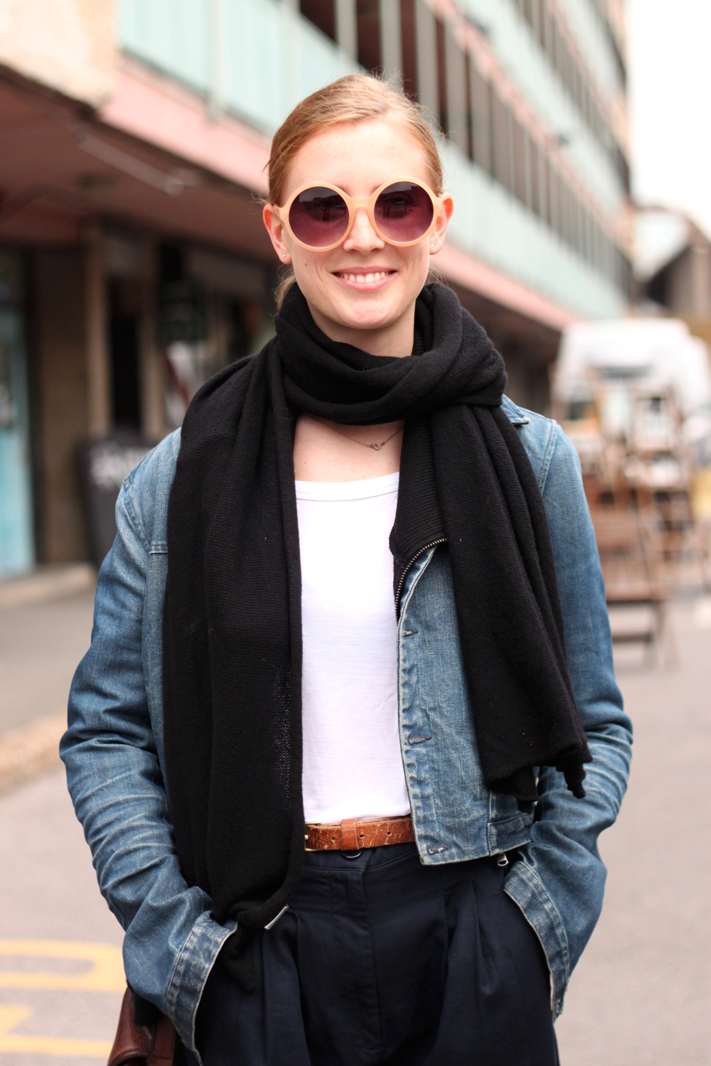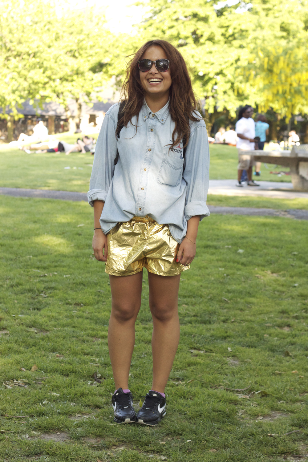 Rikke wears vintage shorts, top from H&M, her Mum’s belt, Converse trainers, hand made necklace, vintage hair band and sunglasses from H&M. I love this playful look.