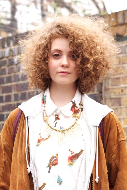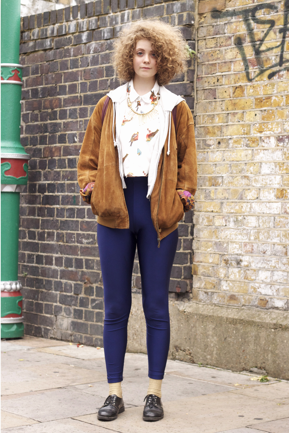 Melanie from Sweden, is a real life doll with her ringlet curls and big blue eyes. With a face like hers she could pull off studs and chains and still look angelic. She wears leggings by American Apparel, socks and hoodie by H&M, vintage jacket, top by Primark and a necklace by Cubus.