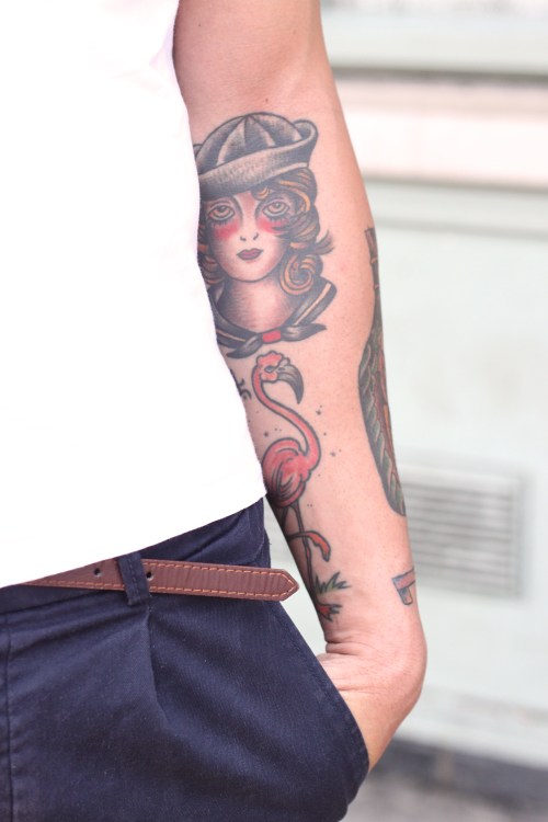 Ruben Salas is a visual merchandiser from Madrid. This is a perfect example of an uber simple outfit, worn well. He’s looking so slick, you’d think he was wearing head to toe designer. But he’s fooled us all! He wears an ASOS tee, Zara trousers, vintage GH Bass shoes and Ray Ban sunglasses.