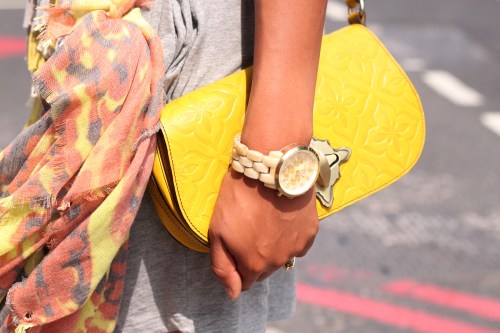 Ama (above) is the fashion editor at MP Mag in Tokyo. She wars a vintage jumper from Tokyo, Salvatore Ferragamo bag, H&M skirt and cuff, a Marc Jacobs chain, Michael Kors shoes and earrings from Tokyo.