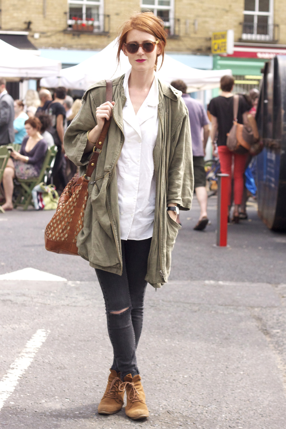 Debbie (above)is the production assistant at ASOS Magazine. She wears Zara shoes, Urban Outfitters jeans, vintage bag and coat, Gap shirt and a vintage skirt worn as a headscarf.