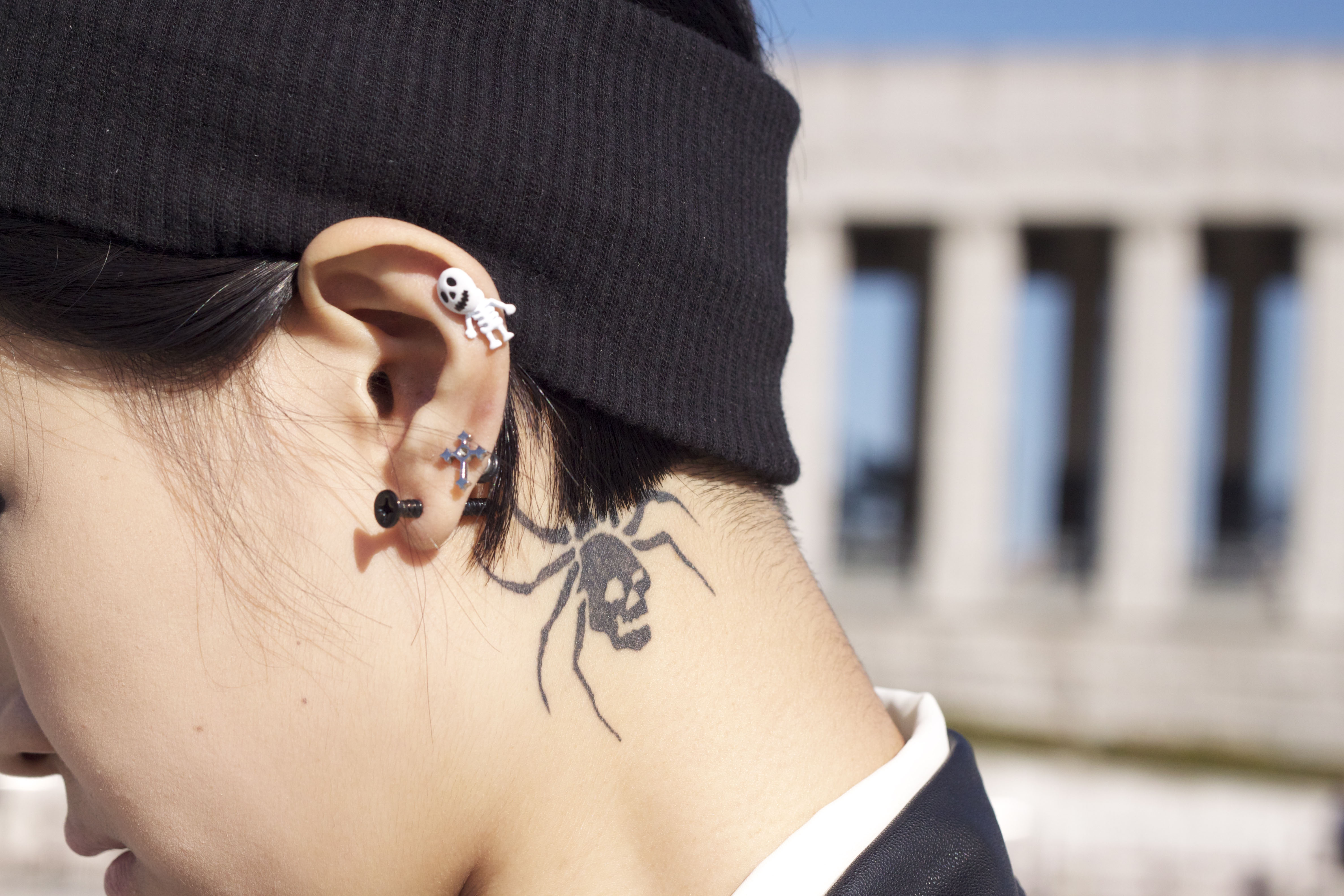 Hyun Zu is a fashion designer and works a totally monochrome look. She wears a jacket and bag by Coii, shirt by Savin, dress by Ace and boots by Lemon Cookie.