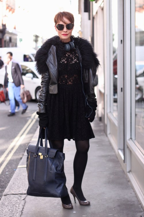 Annaleena is a film maker from Spitalfields. She wears a Jean Pierre Braganza jacket, Zara dress, 3.1 Philip Lim bag, Pied a Terre shoes and Miu Miu sunglasses.