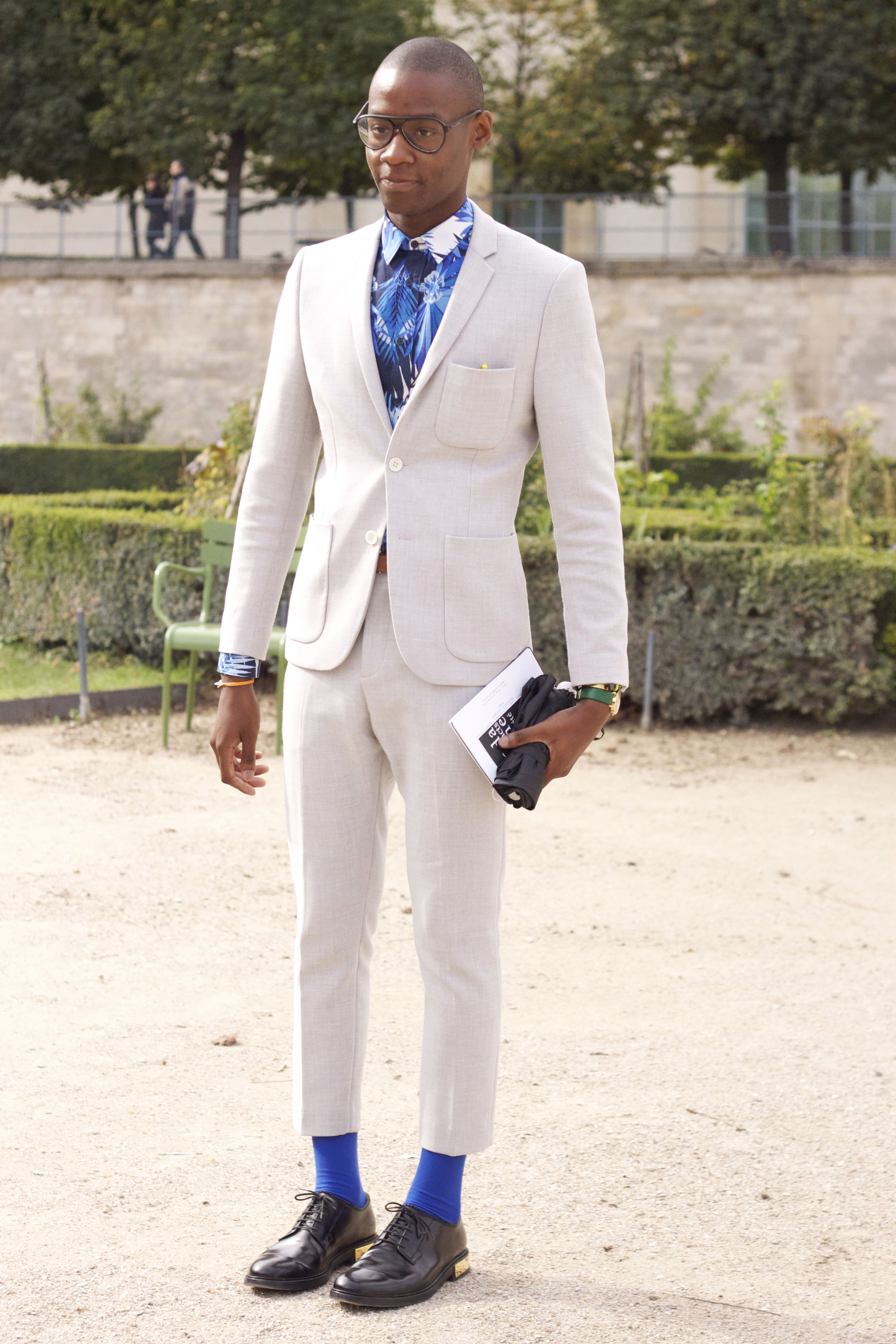 Elisa’s mix of prints, colours and bejeweled accessories makes for one eye-catching outfit. She wears a vintage jacket, top and shorts by ASOS, Sergio Rossi shoes, a Lancelot Knight bag and jewellery and sunglasses from ASOS.