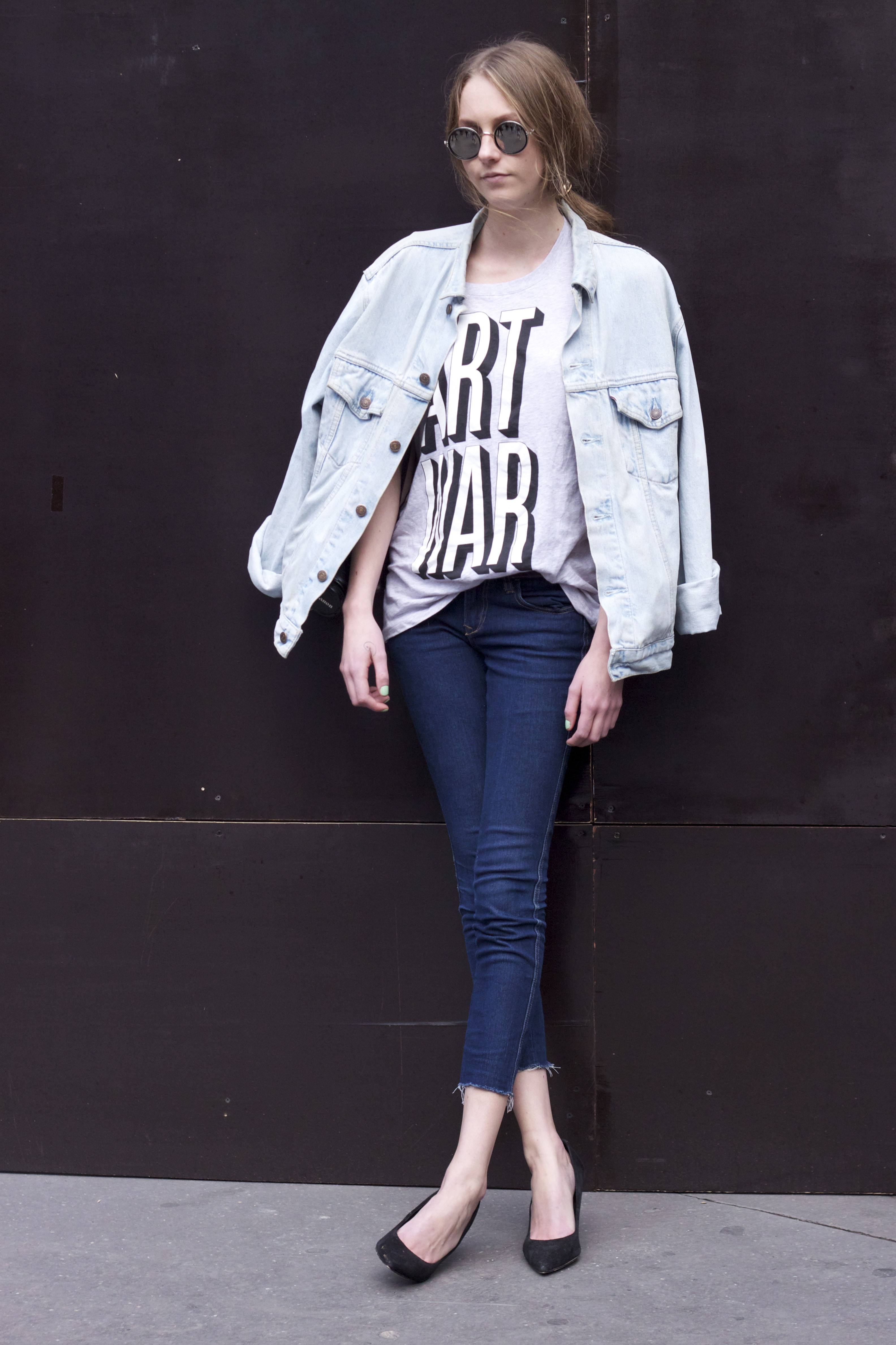 Peggy is a fashion student and DJ. She wears a hat, trousers and bag from Zara, shoes and jumper from H&M.