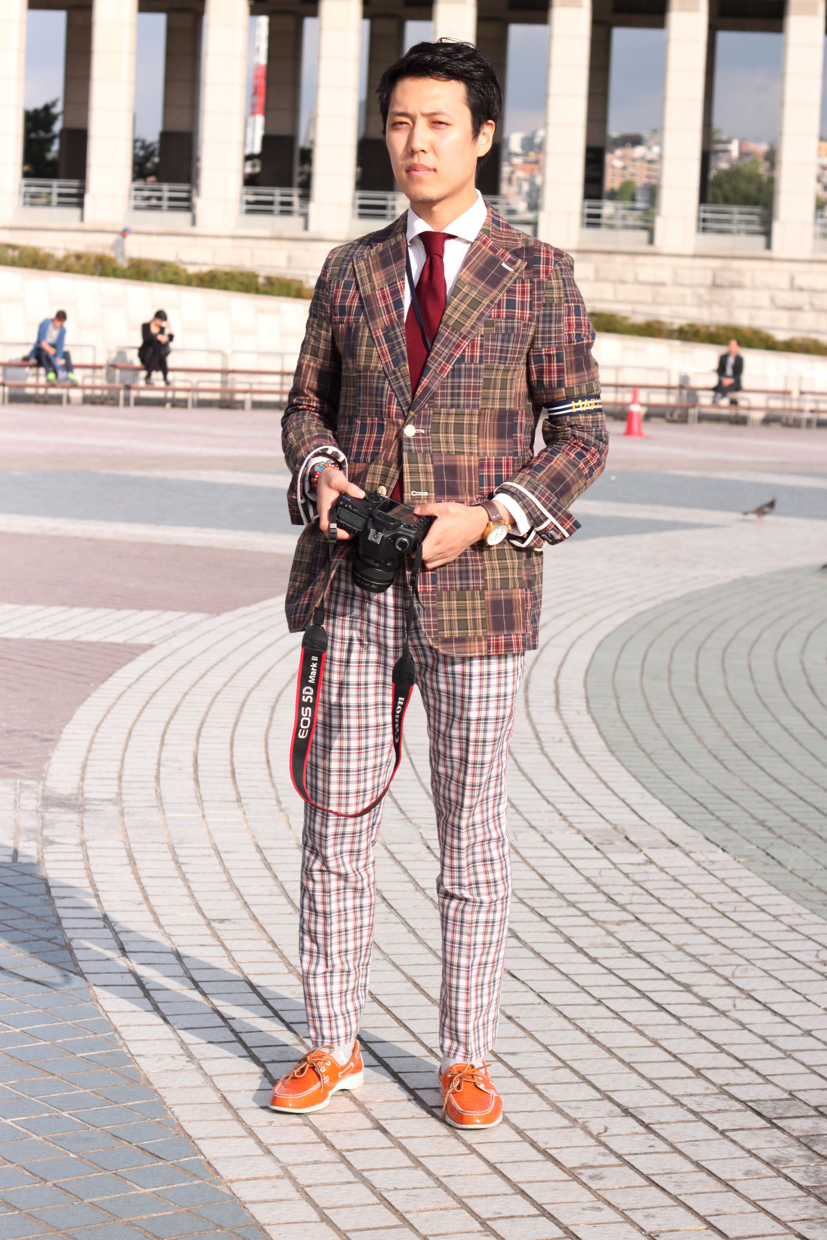 This is Vassili, a Creative Manager for ASOS Men. Born in Russia and bred in France, he’s now living it up and looking slick in the big smoke. He wears an Armani Jeans trench coat, B-Store shirt, ASOS sweatshirt, Nudie jeans, Nike hi-tops, and a James Smith & Son umbrella