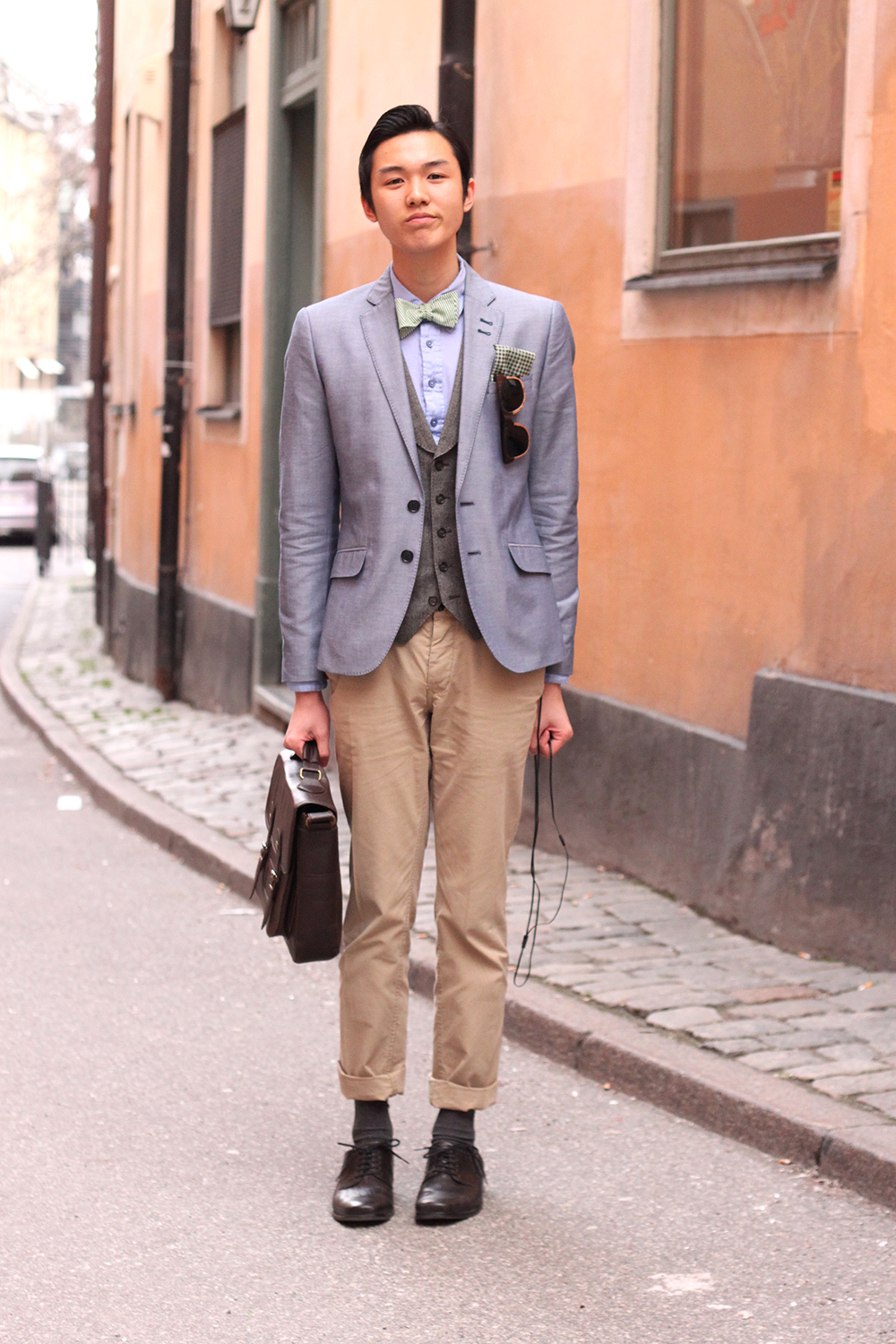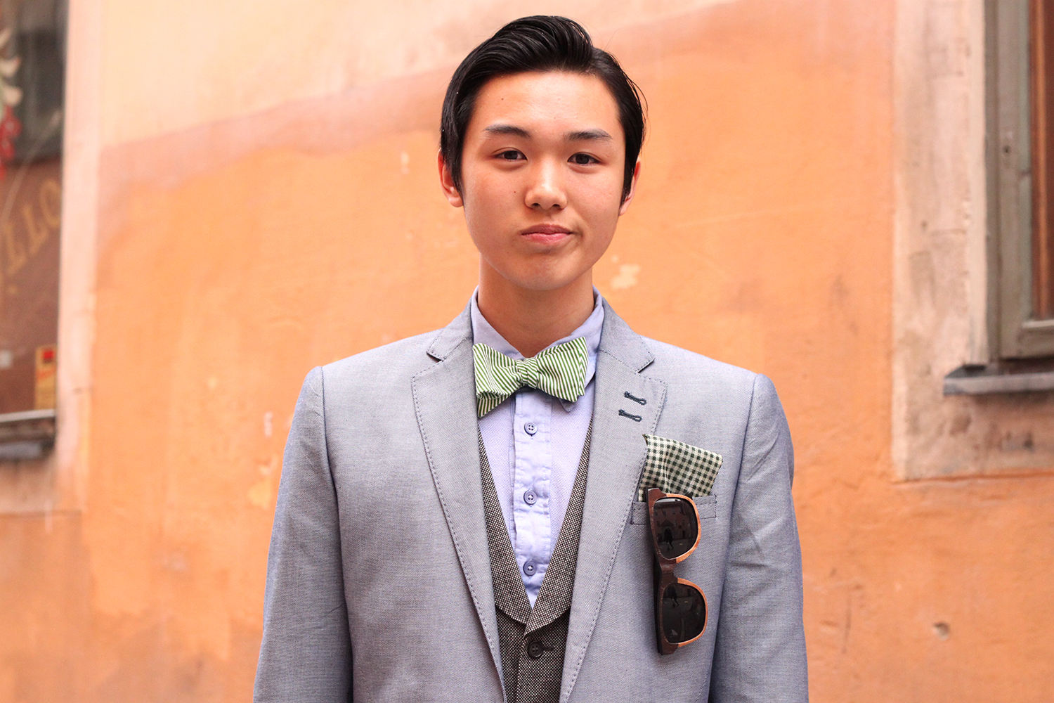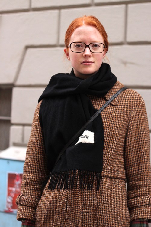Matilda’s bold, playful outfit oozes fun and wit. I just love it! Her look is a real nod to the 80’s with the high waisted, bleached denim jeans, shiny bomber and hair scrunchie. The over sized, layered pieces are worn with confidence and a strong dash of youthful spirit that very few people could pull off. Go girl!