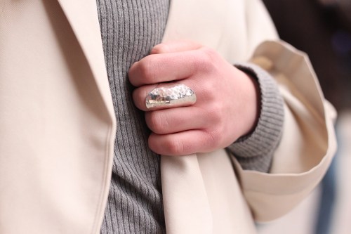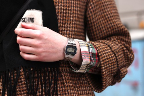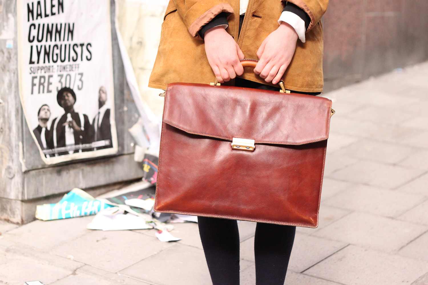 Claire wears jacket by Replay, trousers by Monki, vintage jumper, Sonia Rykiel for H&M wedges, a sample bag from the Jimmy Choo for H&M collection and a ring from Mexico