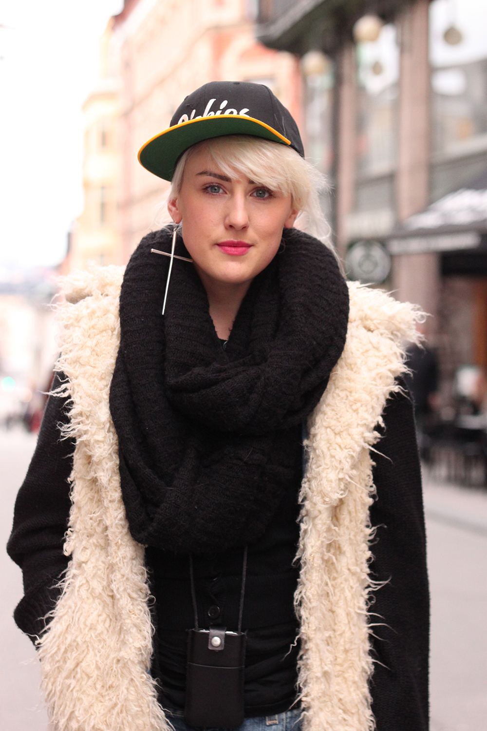 Hedda wears coat by H&M, trousers by Forever 21, boots by Monki, bag by Wera, hat by Forever 21 and Ray Ban sunglasses