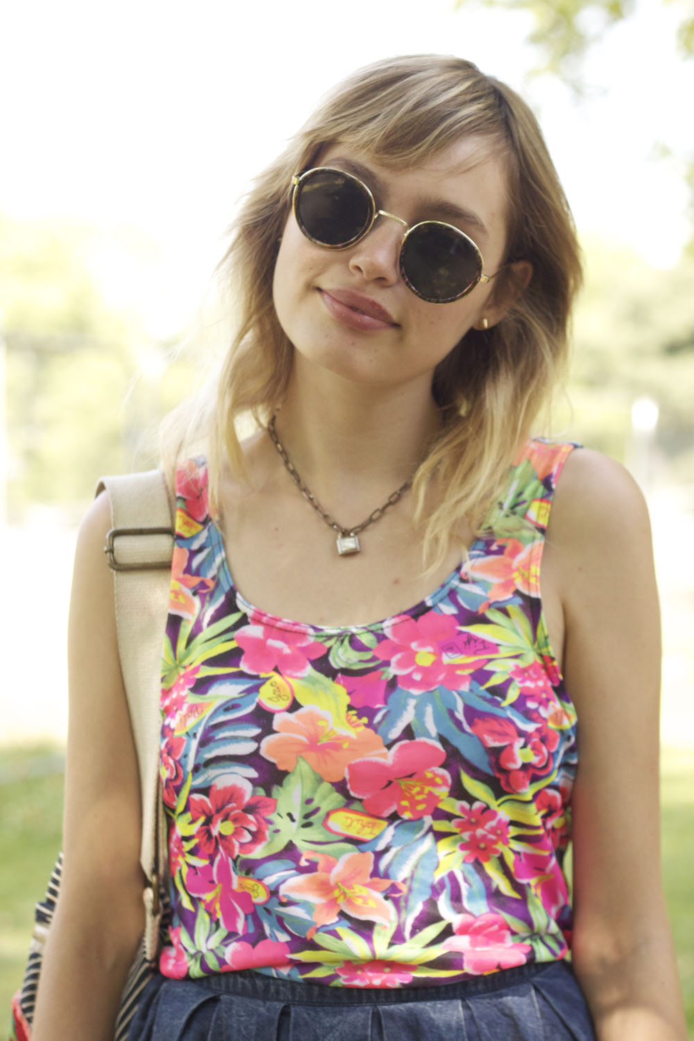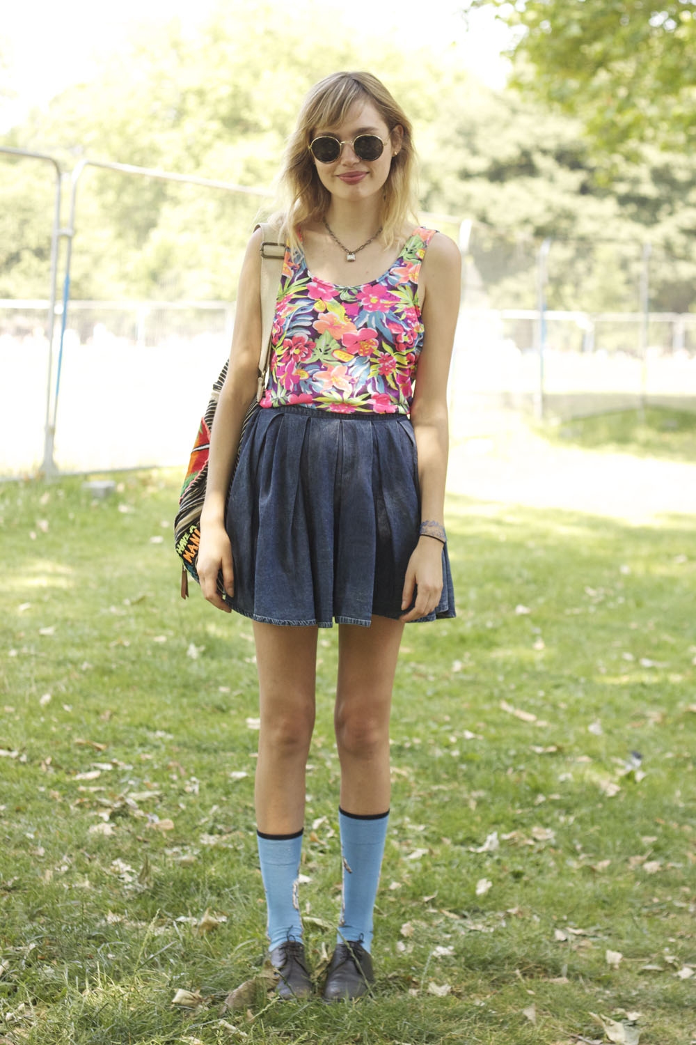 Staz is a model from LA. She wears a vintage top, Motel skirt, vintage Dr Martens, socks from New York and a Brandy Melville bag.
