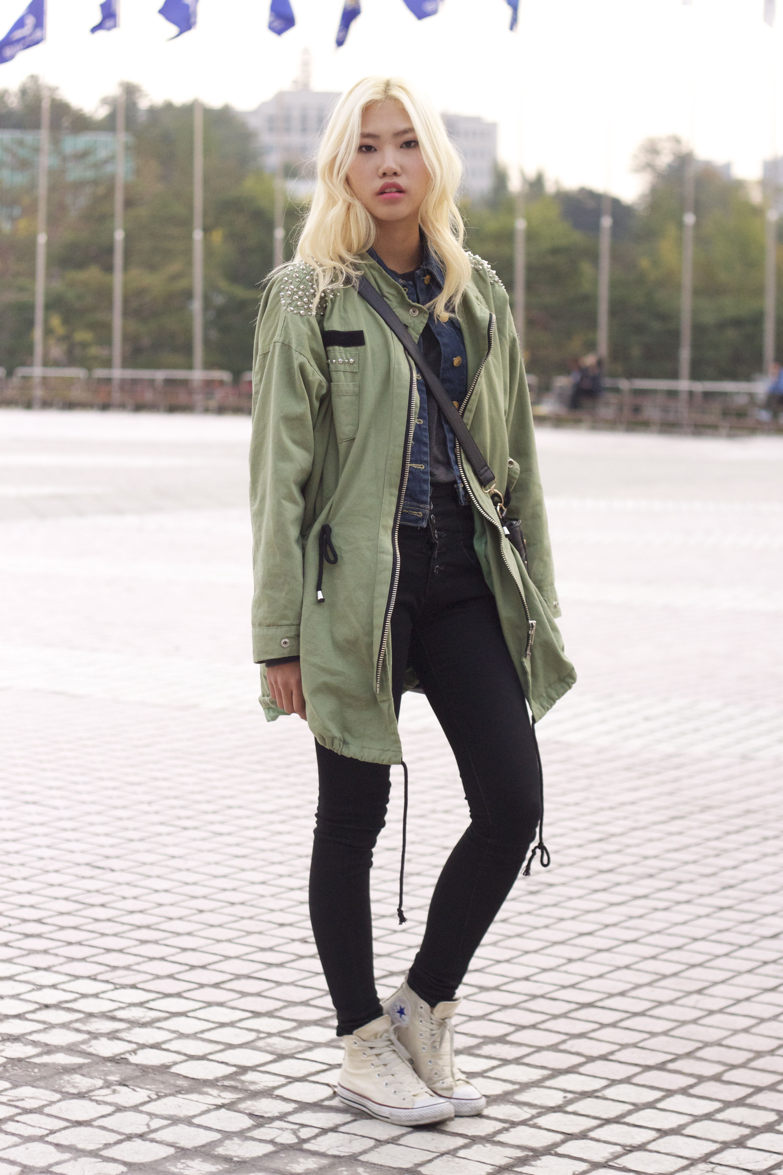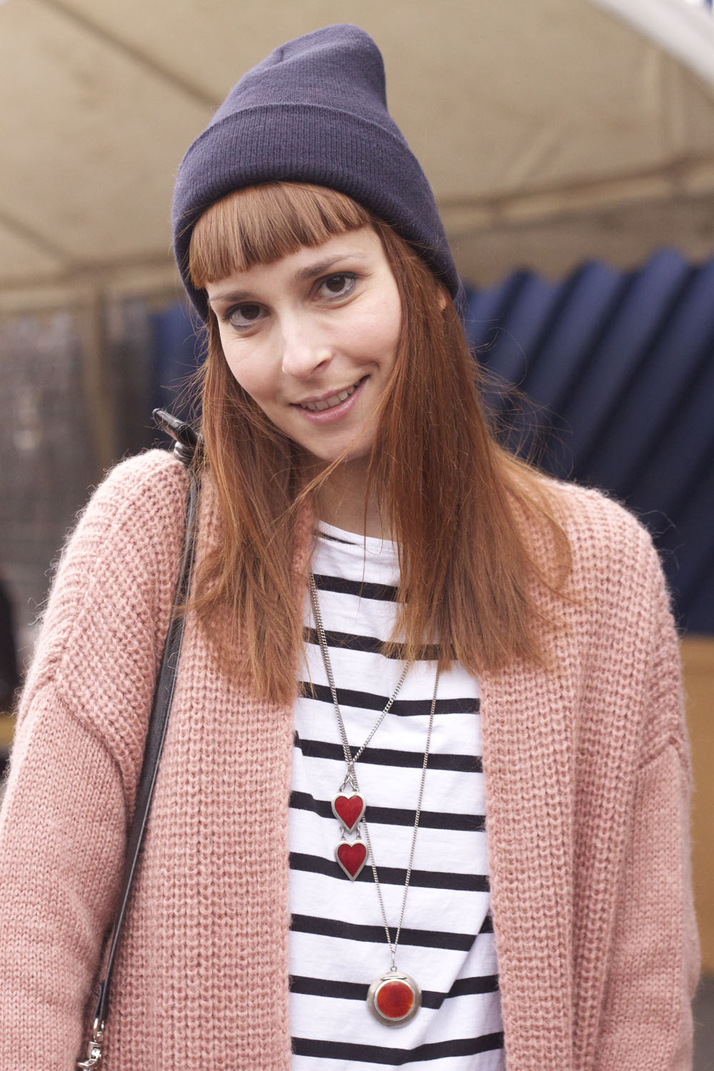 Diletta wears an H&M dress, Zara t-shirt, Topshop cardigan, American Apparel hat, Converse trainers, H&M bag and a vintage necklace from her Grandma.